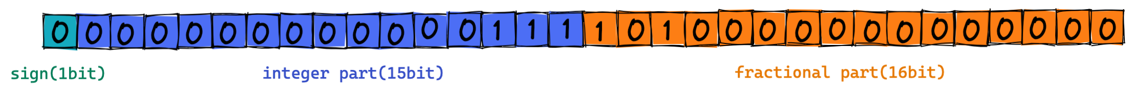 - 다음 16비트는 fractional part(소수부)