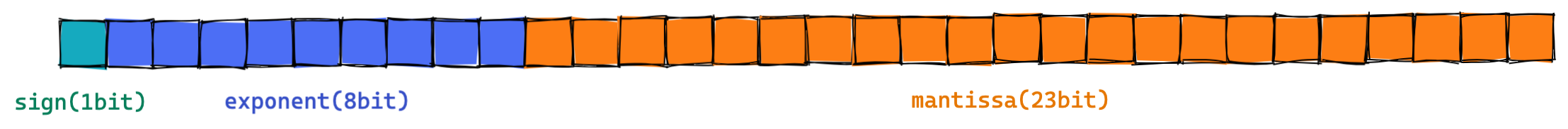 - 처음 1비트는 sign(부호)를 나타냅니다 (0은 양수, 1은 음수).
