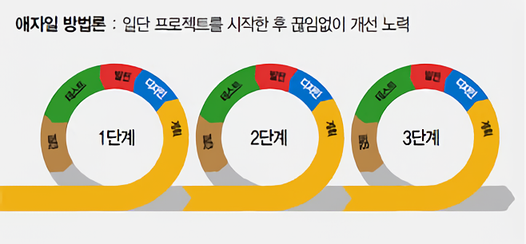 작업 계획을 짧은 단위로 세우고 만들고 고쳐나가는 사이클을 반복함으로써 하나의 큰 프로젝트를 완성해 나가는 방식입니다.